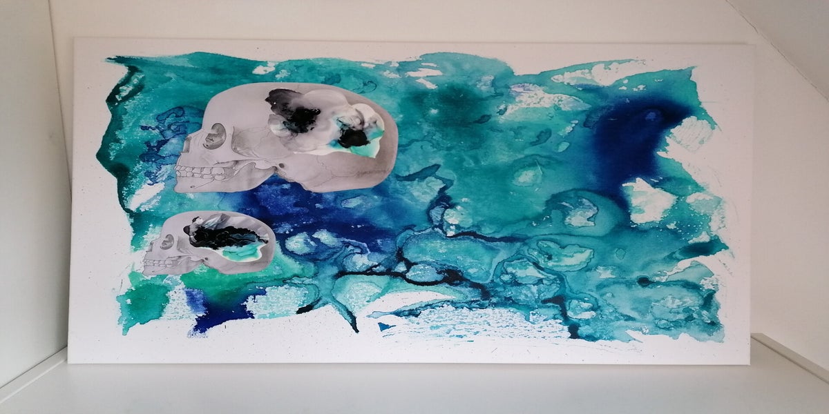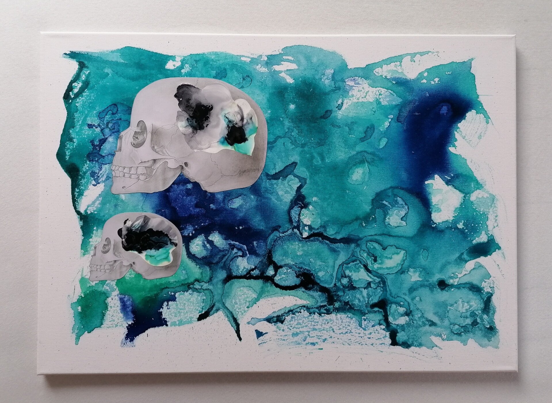 Acryltinte, Papier, Alkoholfarbe auf Leinwand